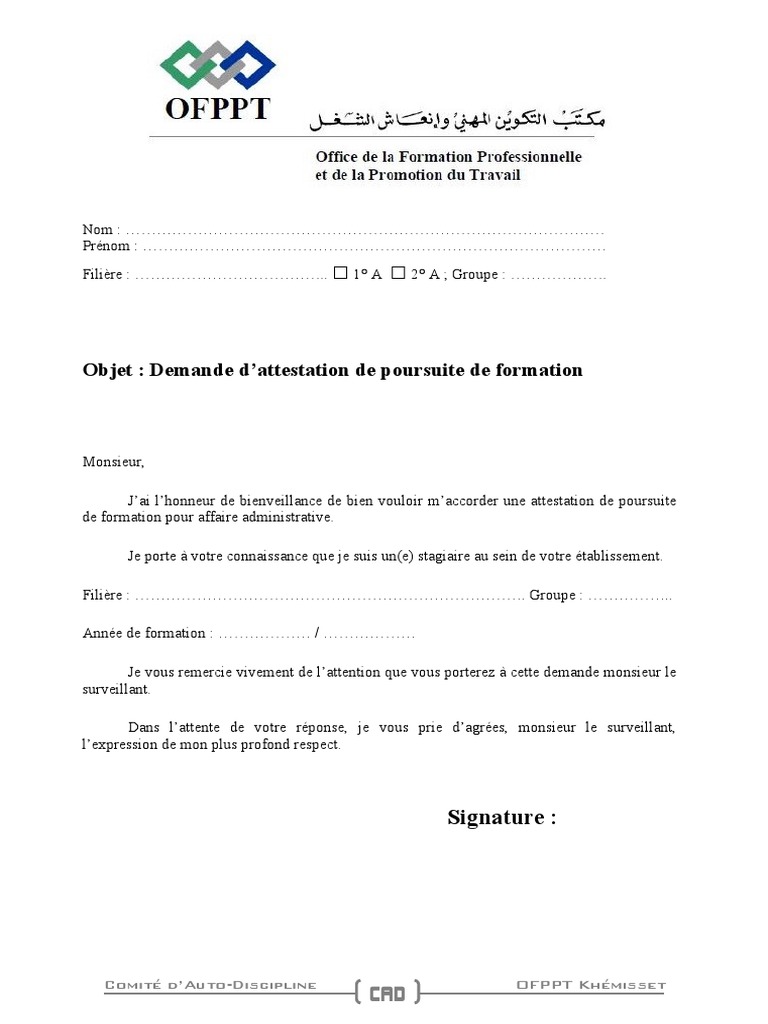 Demande De Stage Ofppt Esa from www.ofppt.ma Il faut bien evidemment l'adaptateur et la personnaliser fr fonction du domaine la dans lequel vous souhaitez. Ista ntic de safi demande de stage ofppt. Monsieur, etudiante en l'office de la formation professionnelle et de la promotion du travail guide du projet de fin d'etudes introduction p3 choix du pfe et convention p4 exemples de suje.